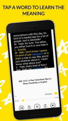 Have fun and get motivated while you learn and listen to real English with this app. Improve your fluency naturally by listening to American voices and native English.