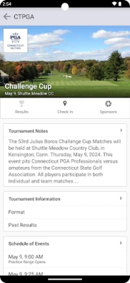 Key Features: • View CTPGA tournament info, tee times, leaderboards and standings. • Find courses and course info - across the U.S. and Canada • Read the latest CTPGA news. • Season standings and stats.