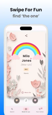 ๐ซ Find names together โ Swipe, match, and share name cards to refine your list and connect with your partner.
