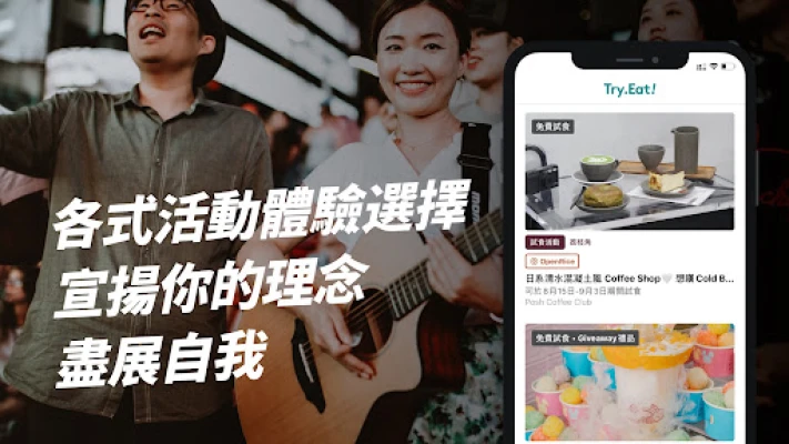 對生活的熱情又何止一種!Try.Eat! 擁有形形色色的品牌合作夥伴,帶來多元化活動選擇。無論你是美食家、藝術家、美妝達人、運動員或其他領域的達人,這裡總有讓你躍躍欲試的獨特體驗。