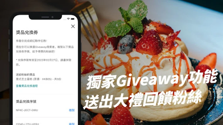Try.Eat! 為全港首個結合「活動體驗 x Giveaway」的平台,帖文觸及率大大提升,人氣粉絲接踵而來!我們為你預備好一系列電子獎品換領券,具備獨一無二的兌換碼,大大減省交接時的功夫和不便。